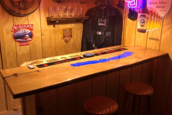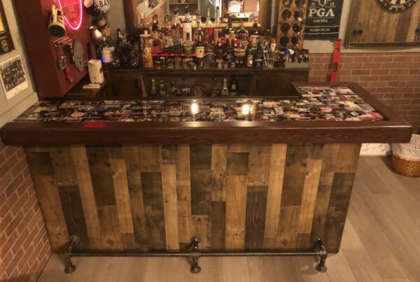 I like a ‘name’ for folks bars (something fun or that has special meaning to you somehow) & to create a logo using that name. It creates a distinctive individuality uniquely your own. It’s exciting when you’re out with friends and say, “Hey, let’s go hang out @ The Bulldog Pub” (for example), instead of, “Hey, let’s go back to our house”. I like to get to know you a little to get a vibe for who I’m creating for. Your identity in a fun,family,sports, business…whatever – way. It makes the whole process more ‘involving’ of you, rather than just building a stock, sterile bar. I don’t wanna make ‘any’ bar, I wanna make ‘Your Bar’! …Cheers